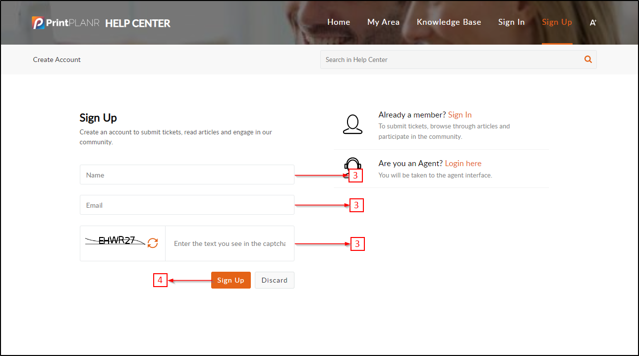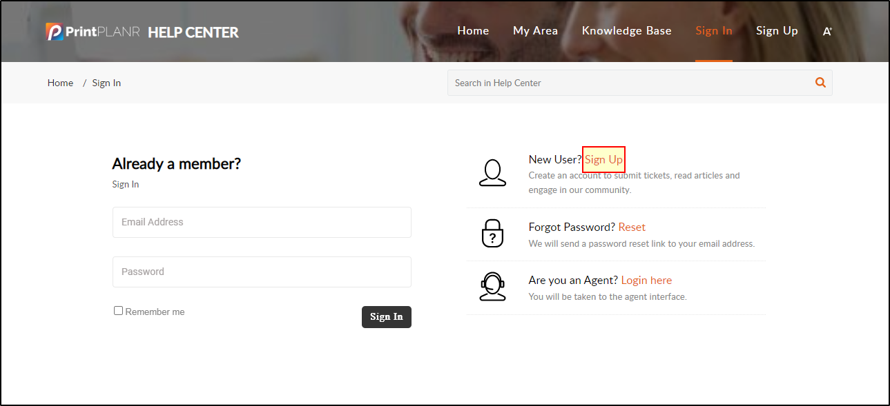 There are two ways to Sign Up to our Help Center