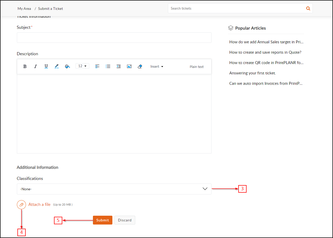 - Ticketing system will allow PrintPLANR users to raise requests with PrintPLANR support team. This requests can be for any questions, issues or any customization required