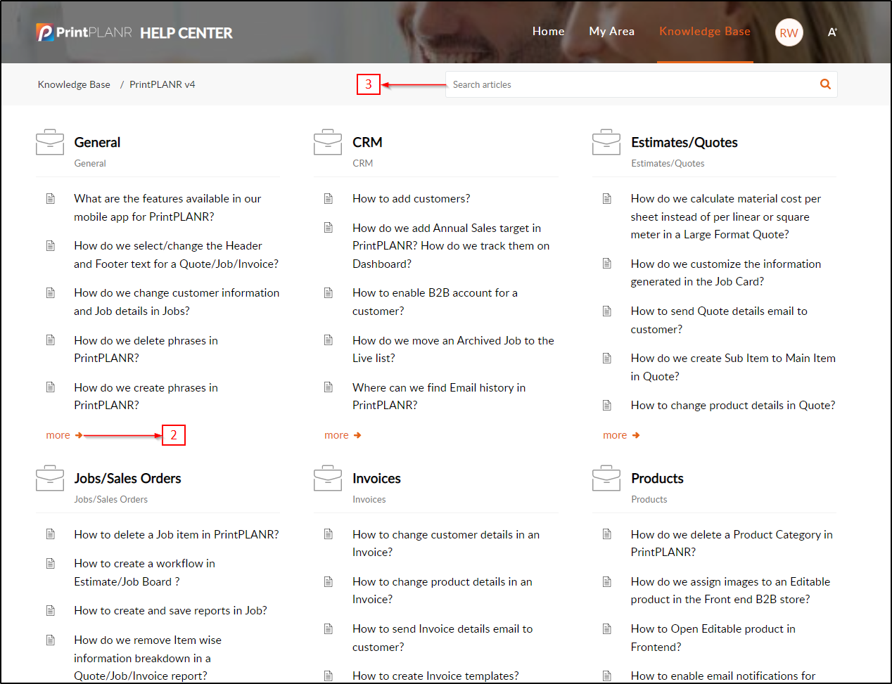 - Knowledge Base is a library of articles which consists of instructions, FAQ and updates related to the features and functionalities available in the PrintPLANR MIS & W2P software